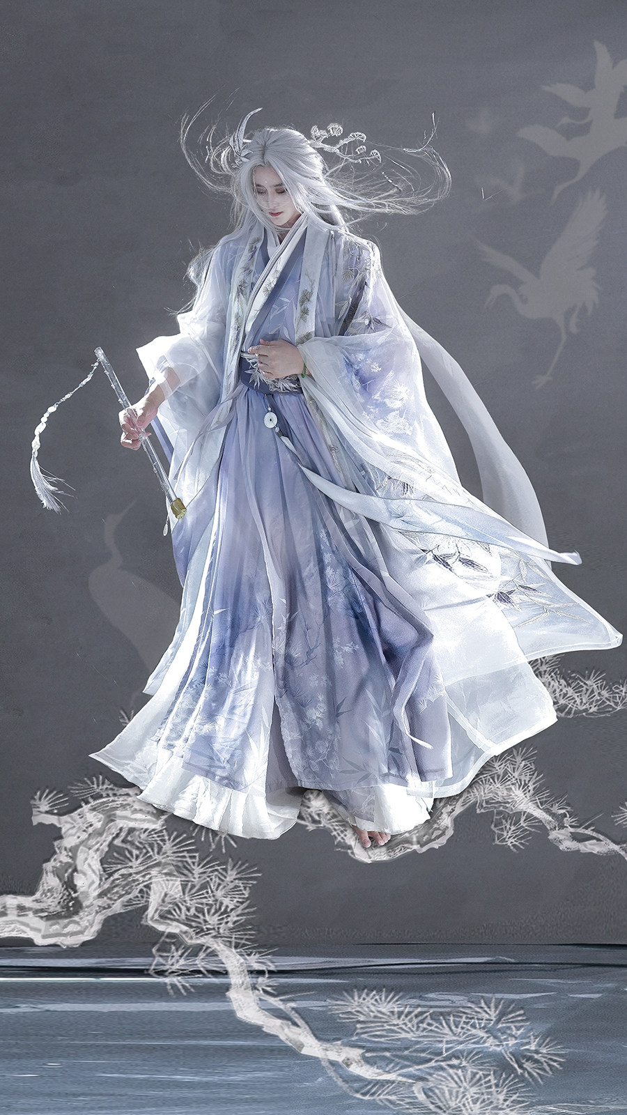 メンズ漢服 パープル 【岁寒三友】