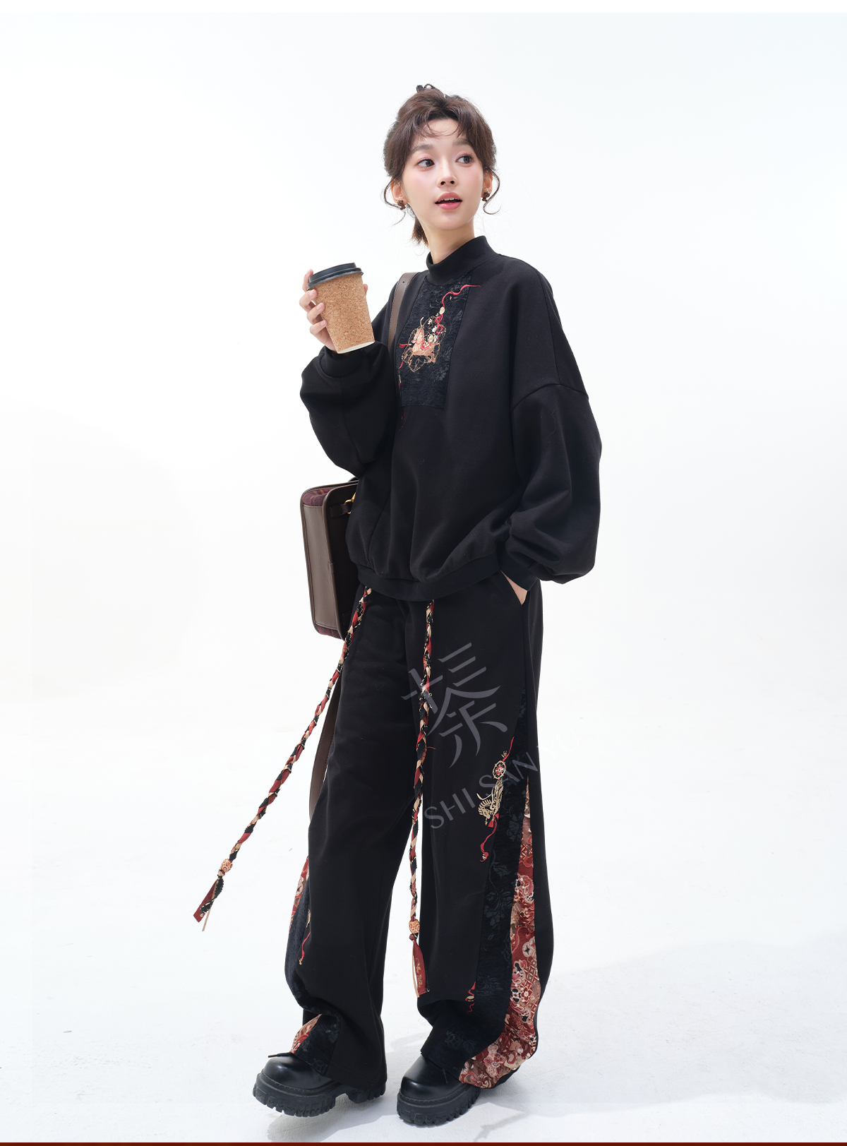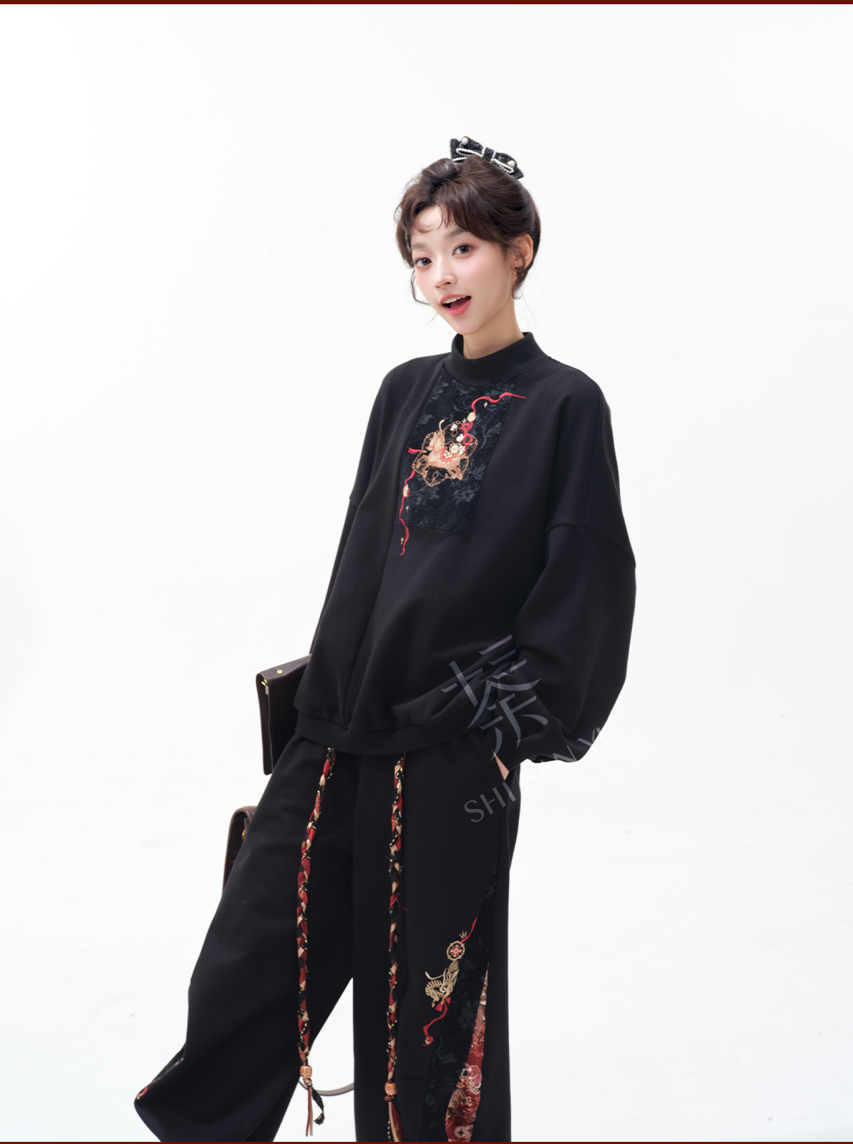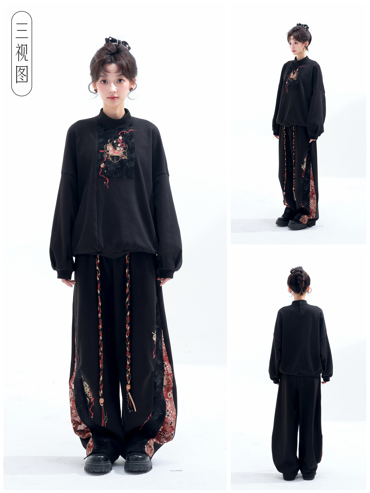 刺繍 裏起毛トップス+ズボン レディース 十三余[金鞠]