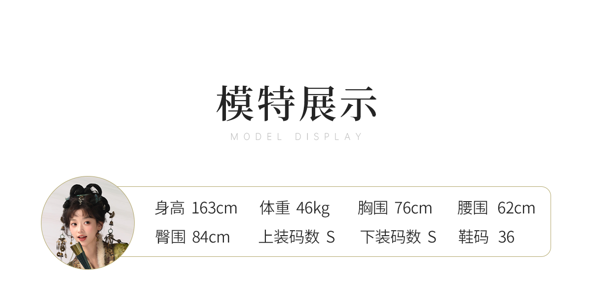 身長:163cm、体重46kg、バスト76cm、ウエスト62cm、ヒップ84cm、試着サイズS
