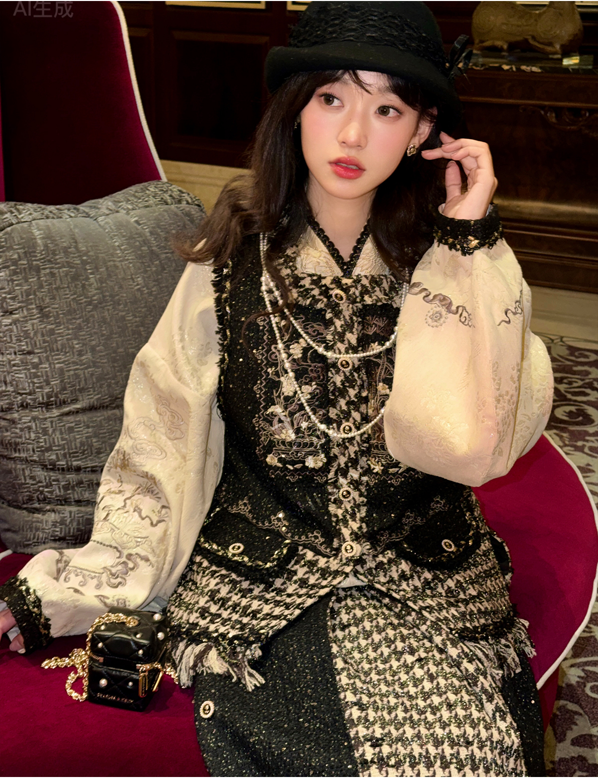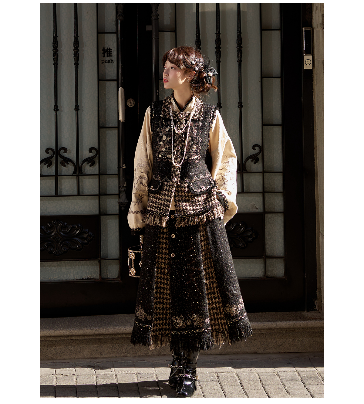 ベスト+トップス+スカート