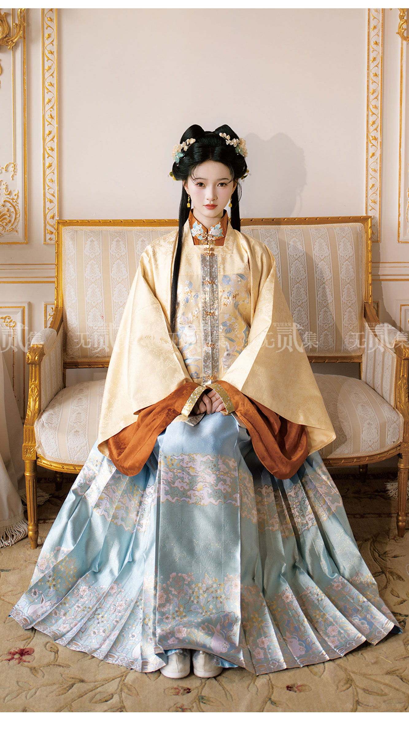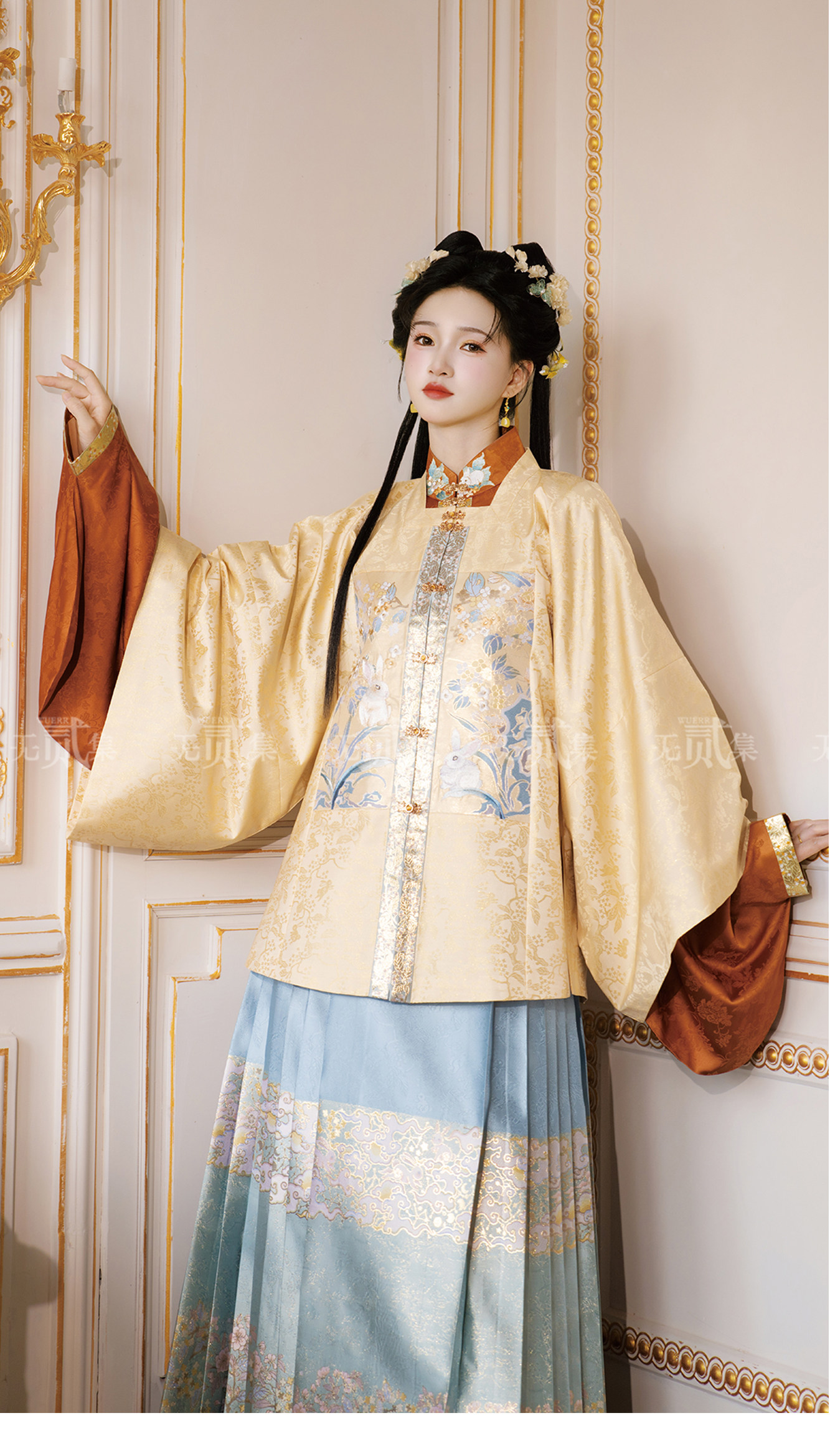 3点セット 兎柄刺繍漢服 明制レディース漢服【月桂千里】