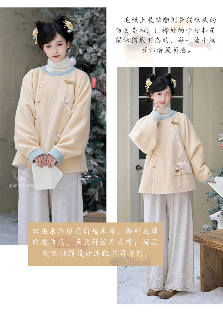 猫柄刺繍 レディース漢服  【一封喵函】