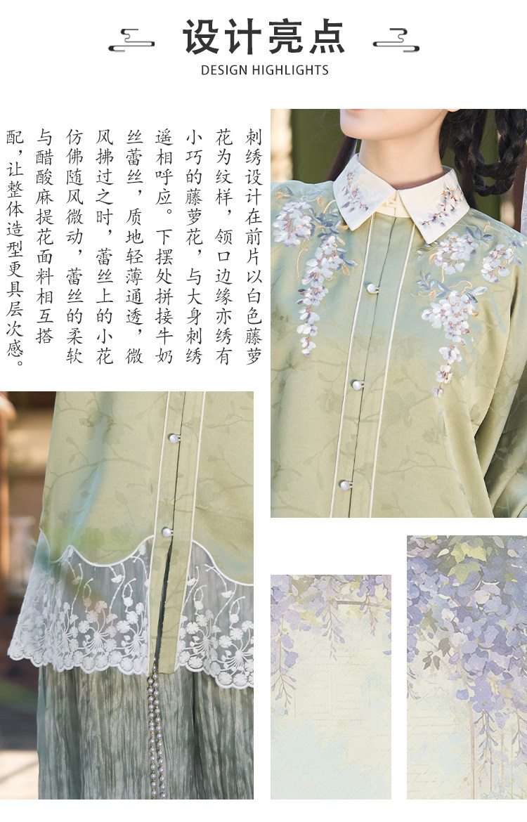藤の花柄刺繍 レディース漢服  【立春·蔓蔓烟萝】