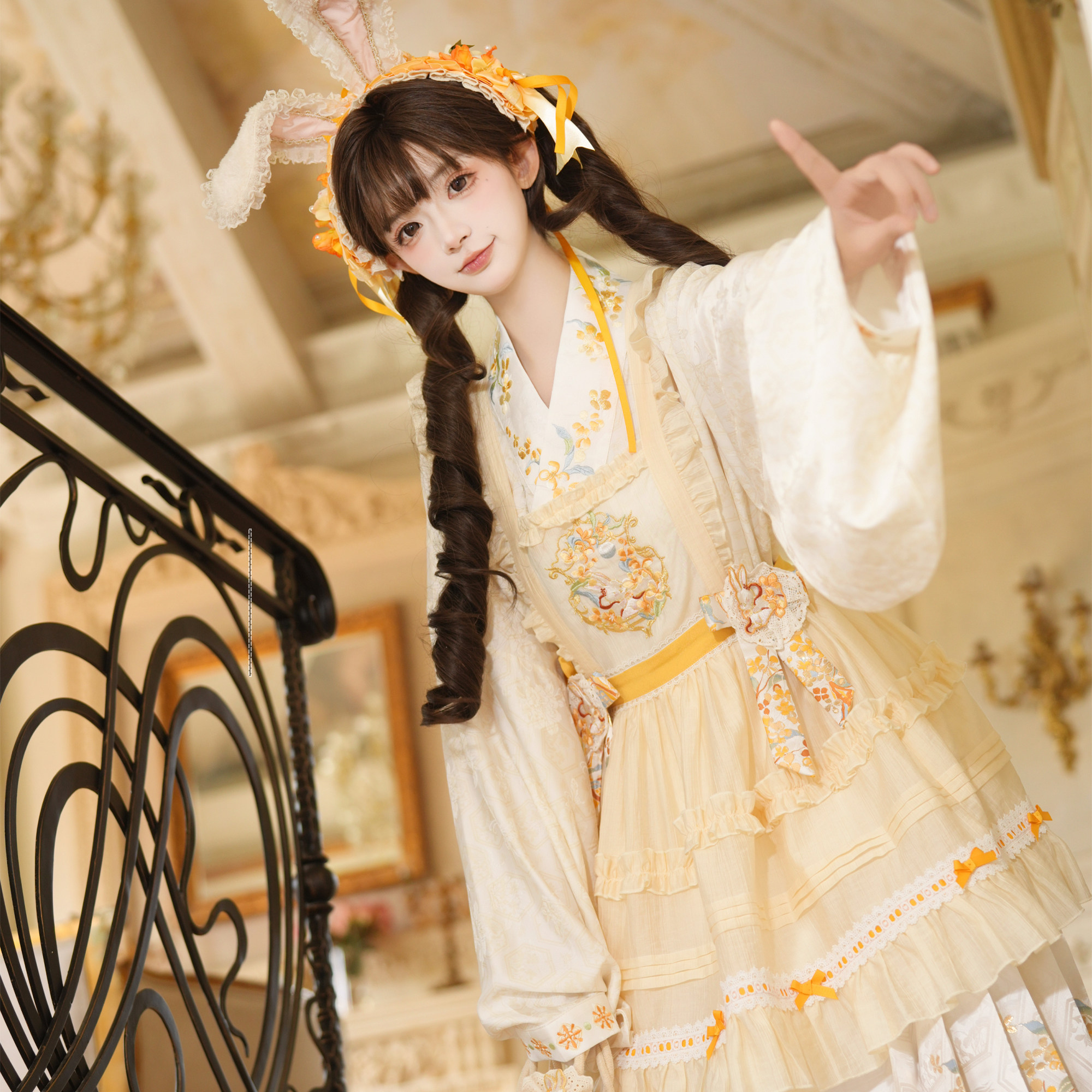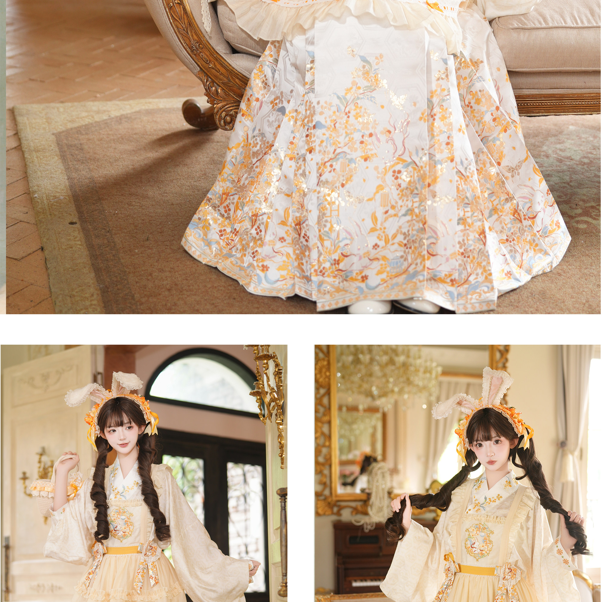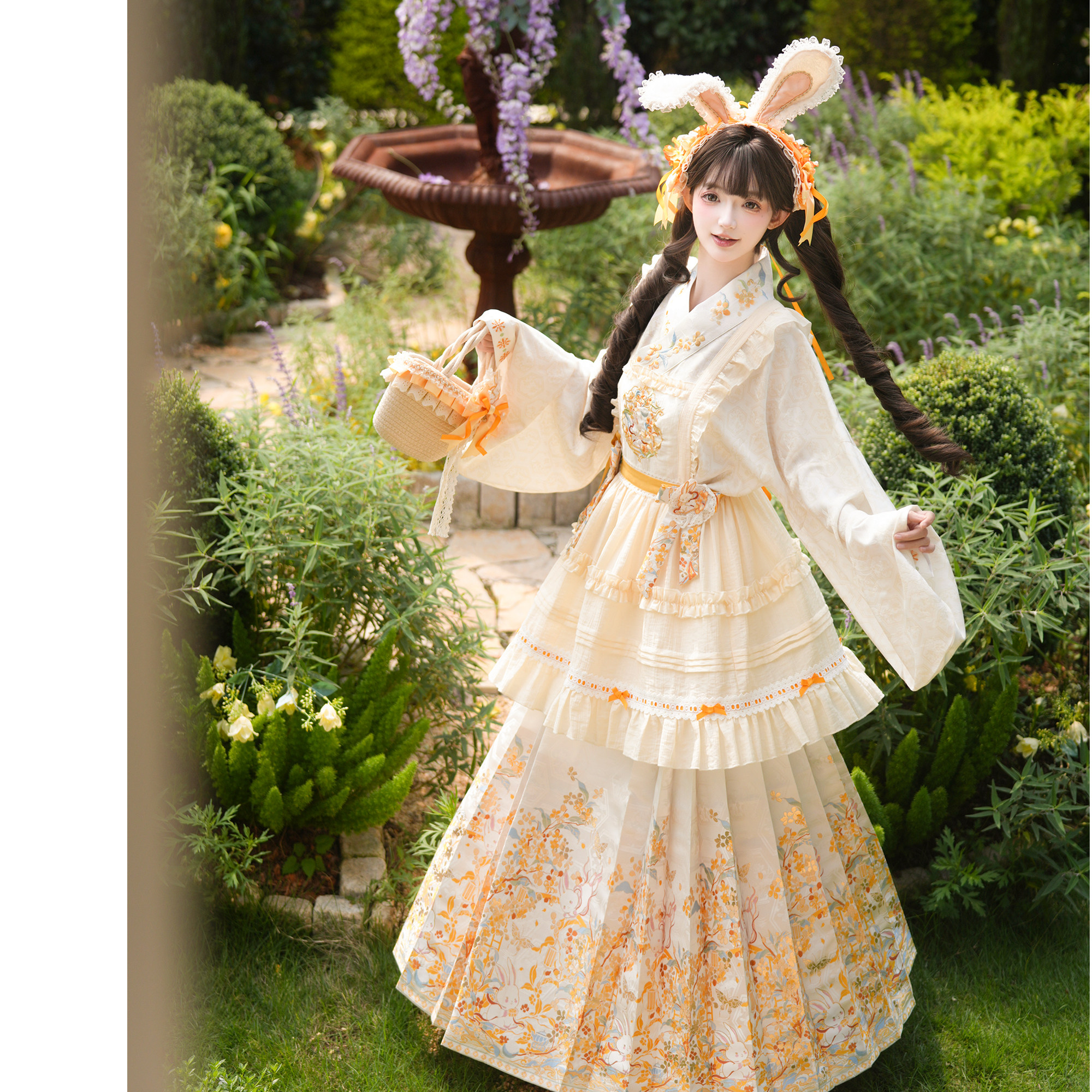 spring-sounds: ホーム > ♥レディース漢服 > 兎刺繍 明制レディース漢服 琵琶袖 花仙记【金枝兔影】