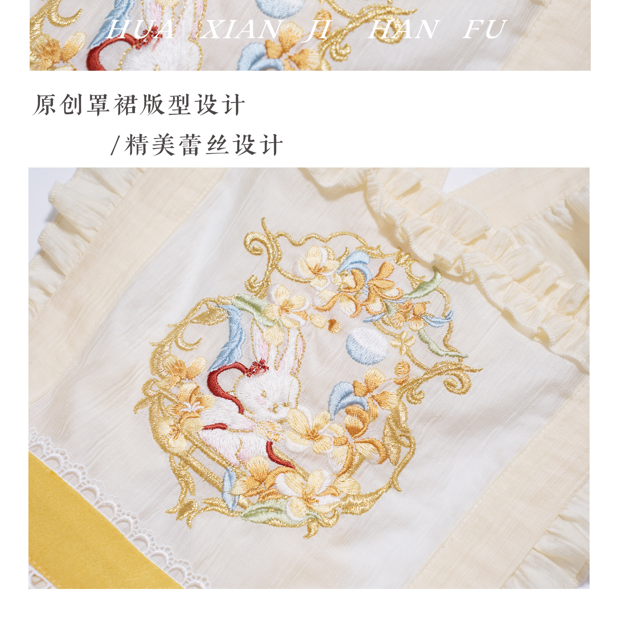 兎刺繍 明制レディース漢服 琵琶袖 花仙记【金枝兔影】