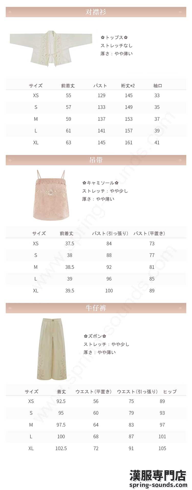 spring-sounds: ホーム > ♥レディース漢服 > テンセルの対襟トップスとベージュの刺繍デニムワイドパンツ 十三余[雪芽]