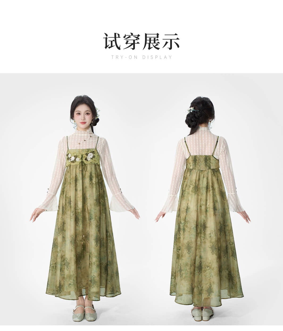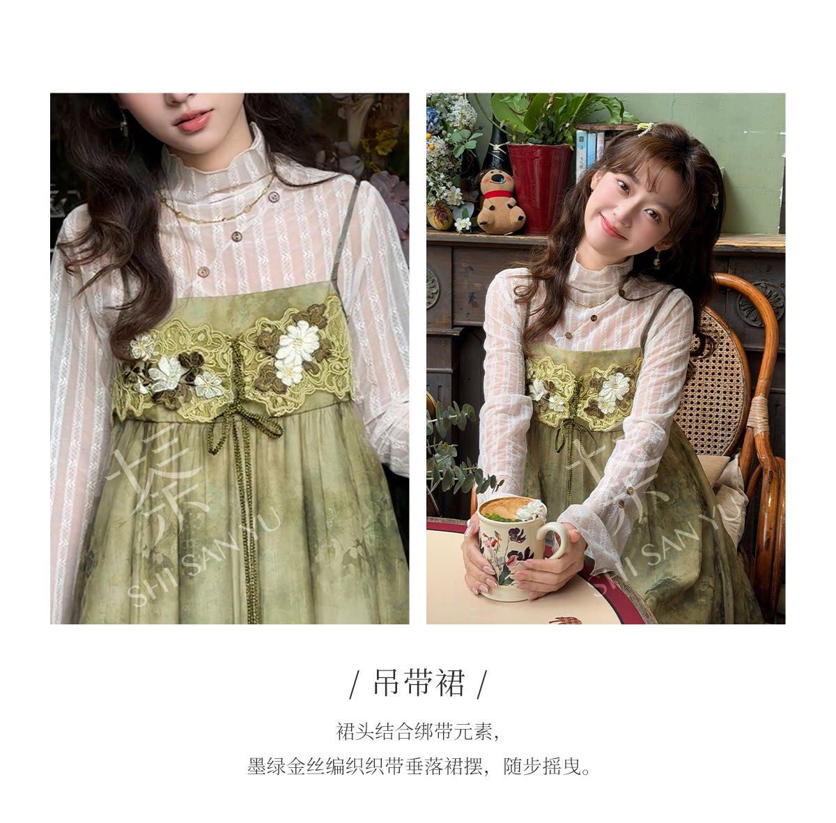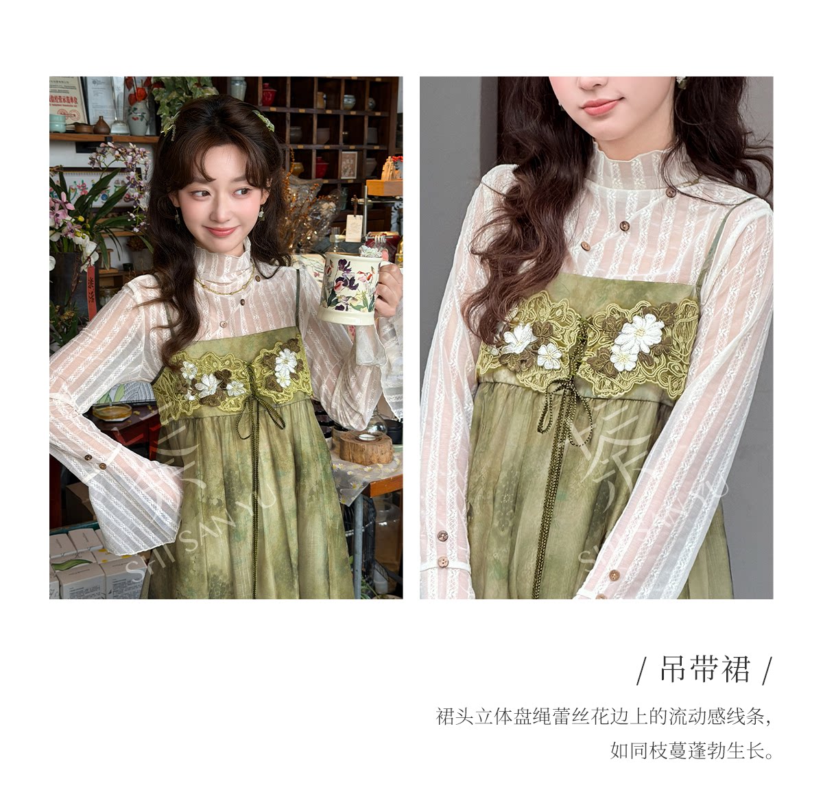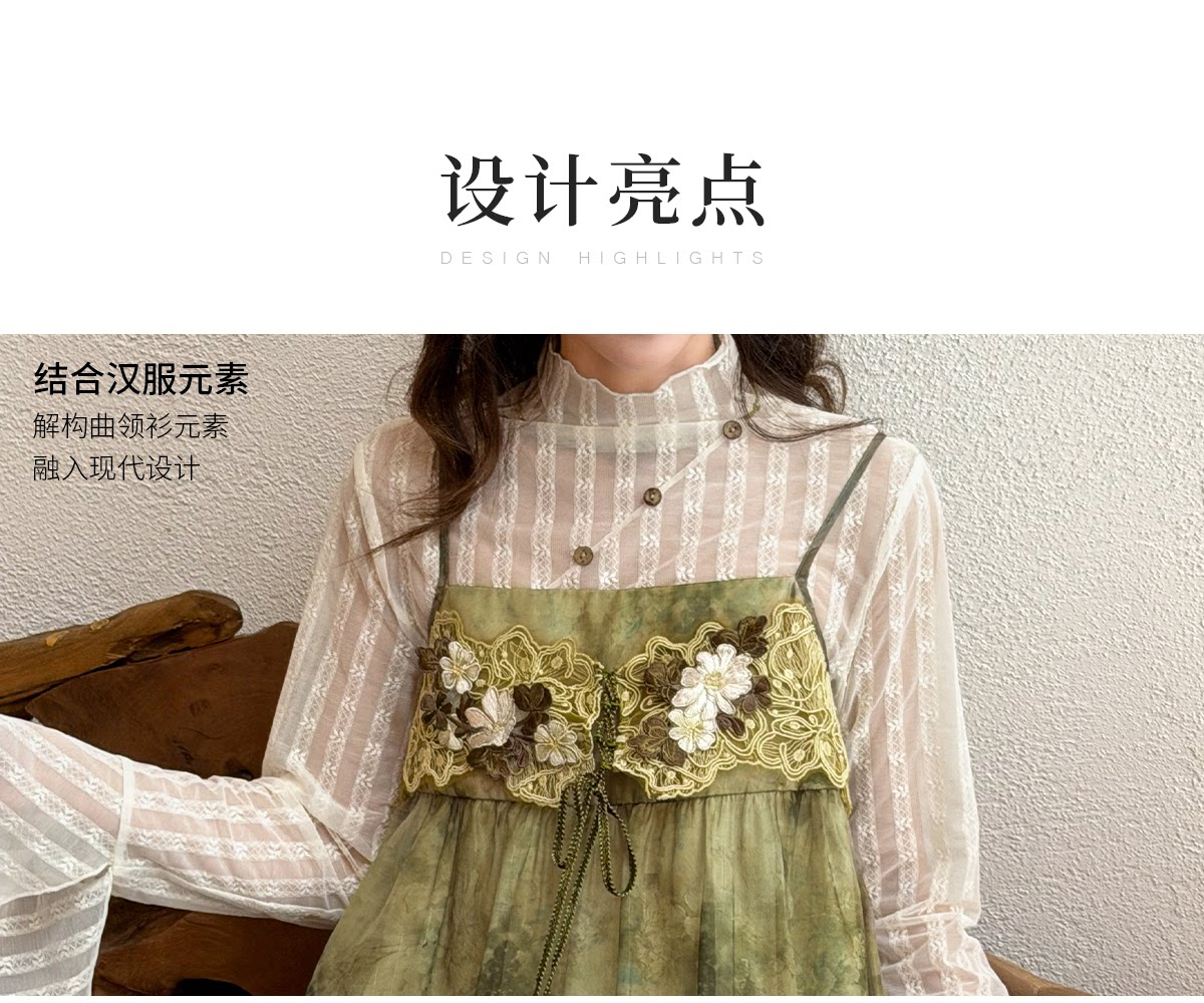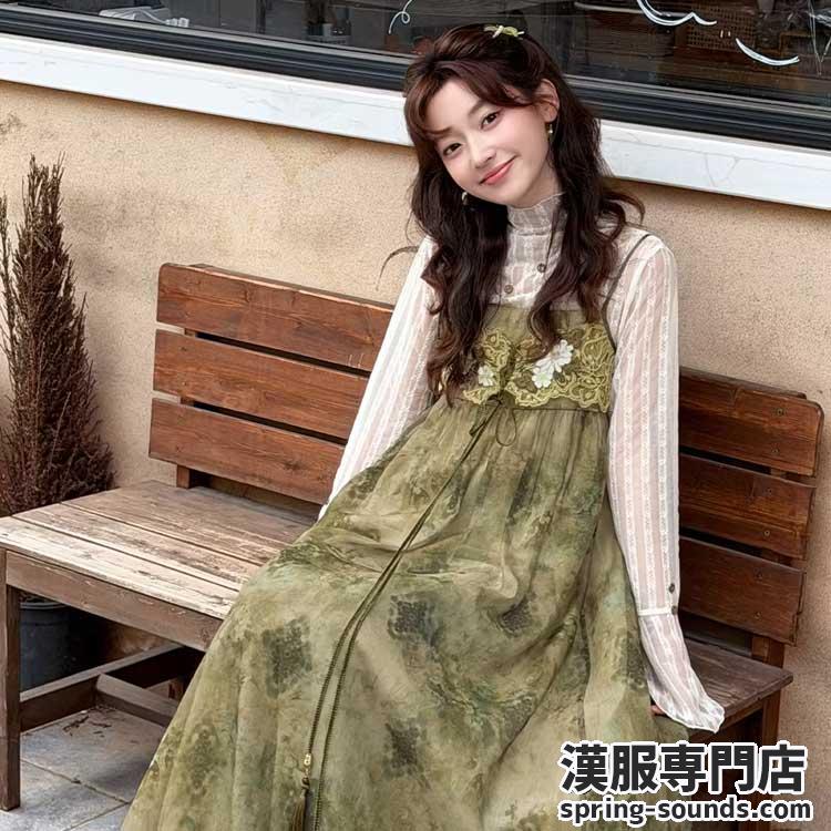 spring-sounds: ホーム > ♥レディース漢服 > 日常向け キャミソールワンピース+半透明ハイネックインナー 漢元素レディースセット  十三余[松蔓]