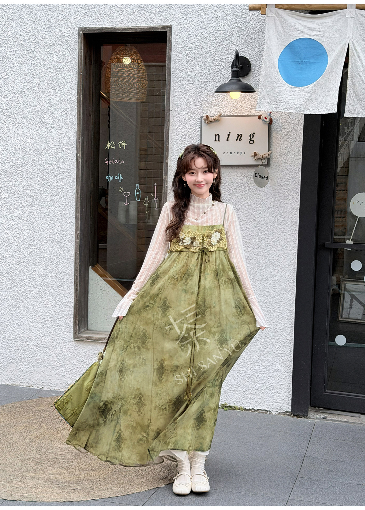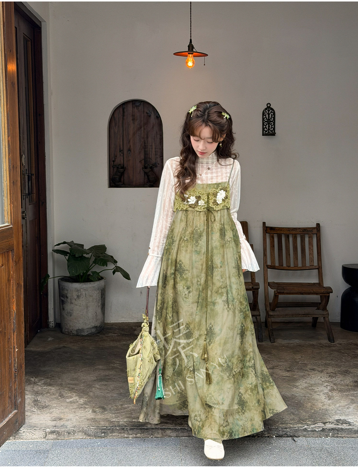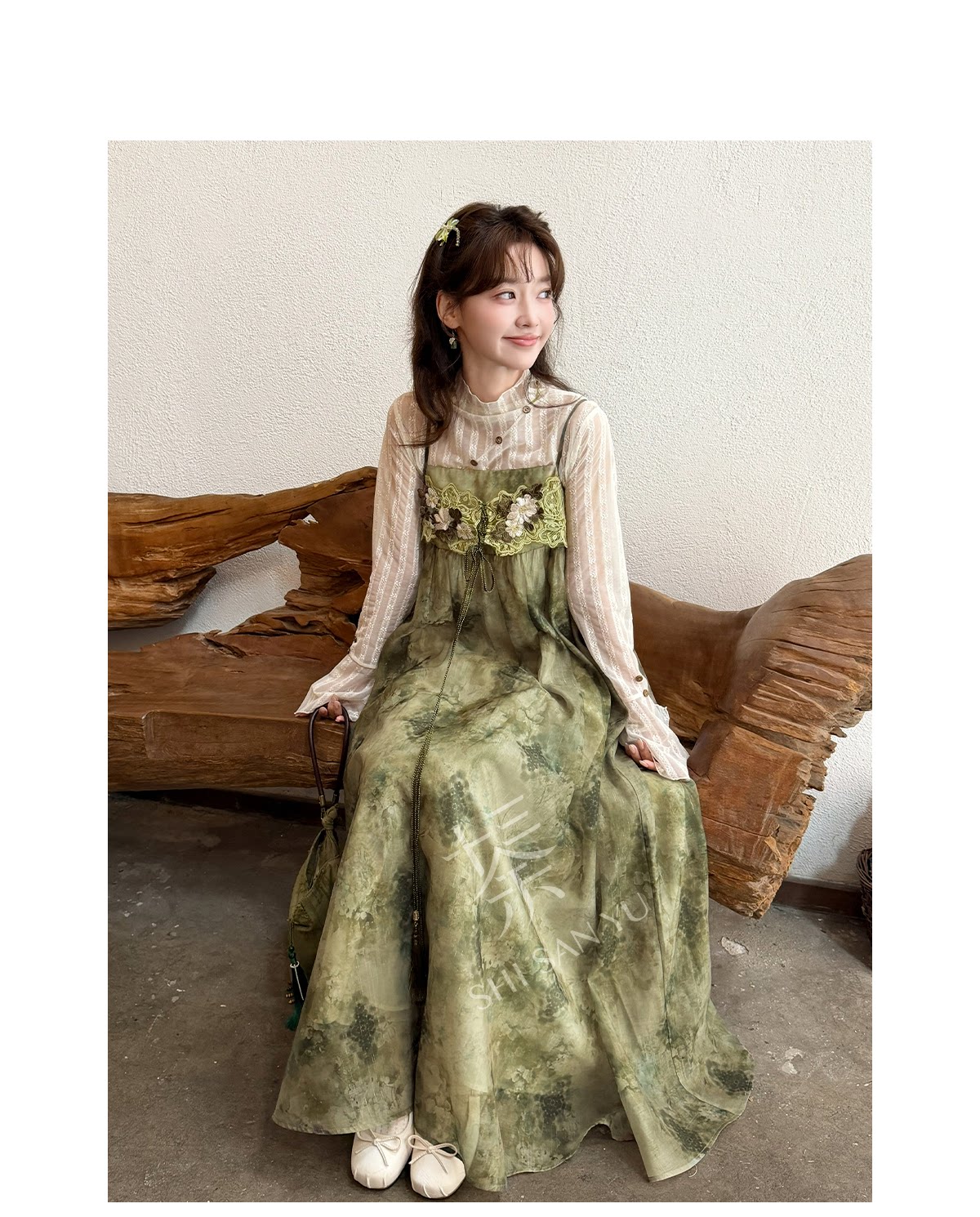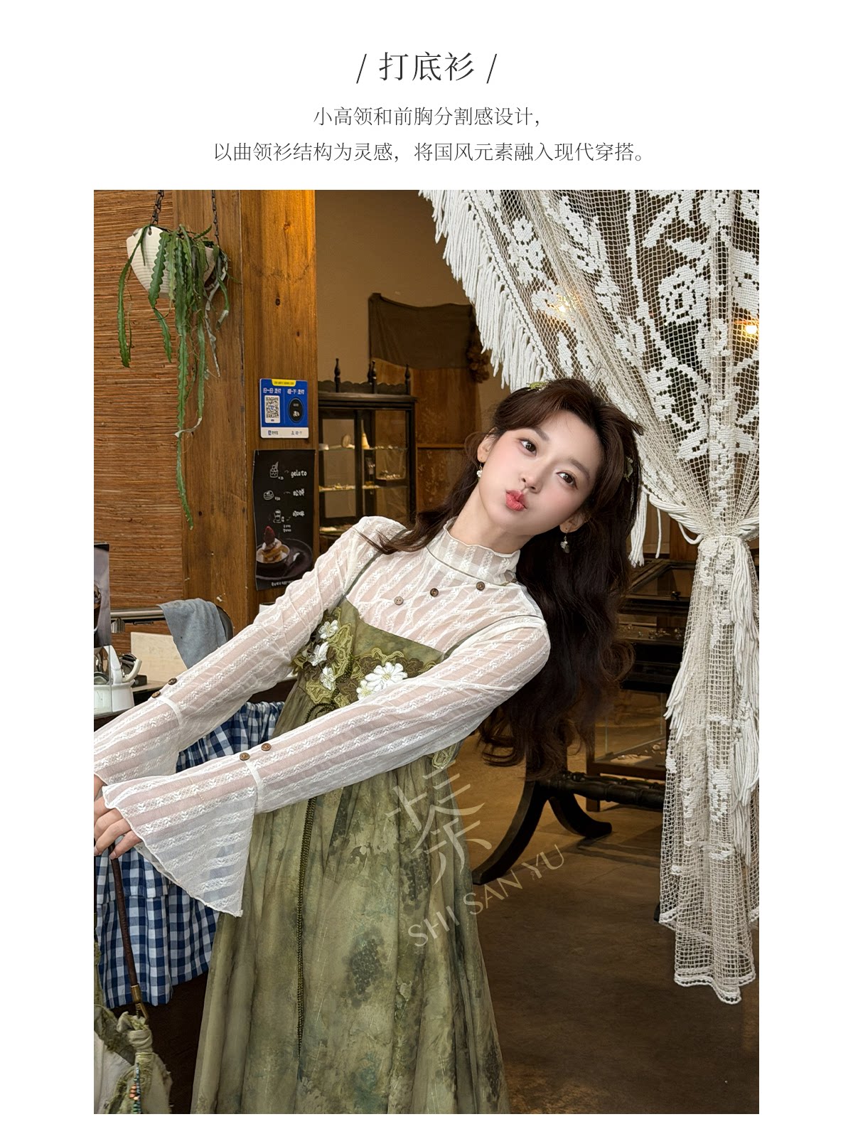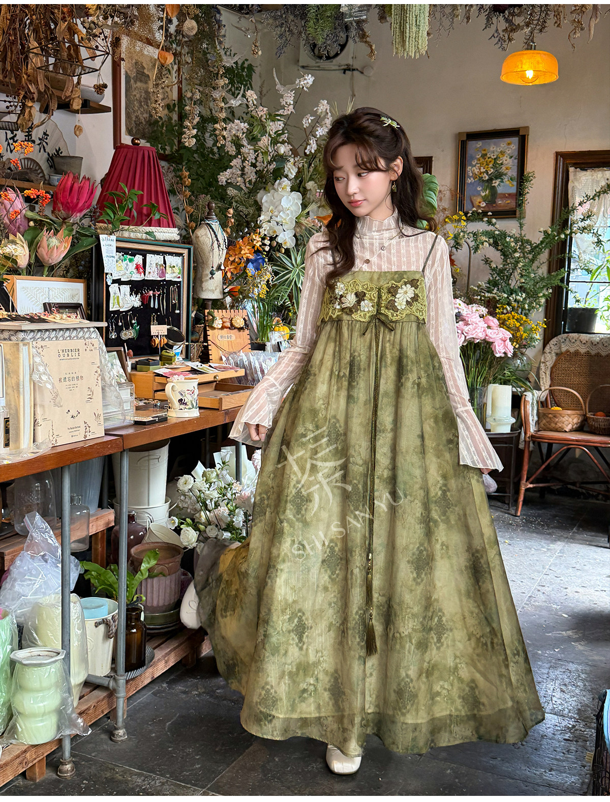 spring-sounds: ホーム > ♥レディース漢服 > 日常向け キャミソールワンピース+半透明ハイネックインナー 漢元素レディースセット  十三余[松蔓]