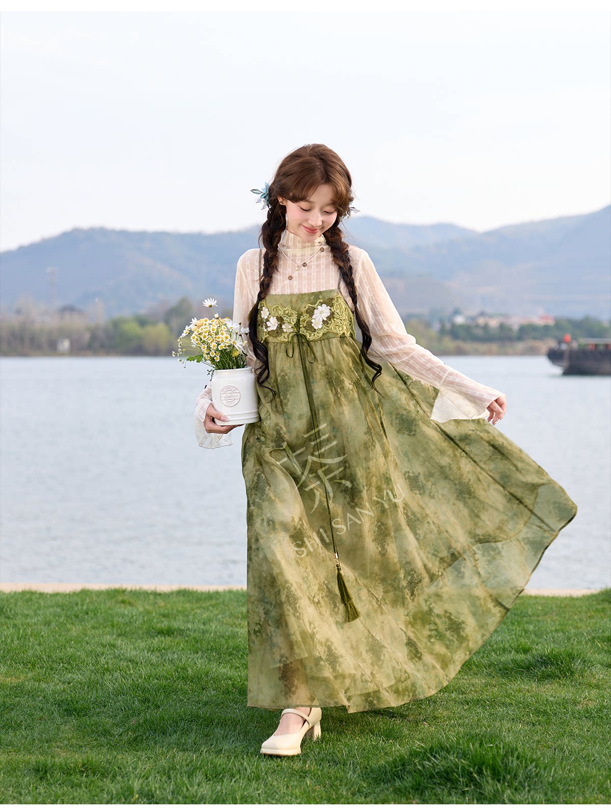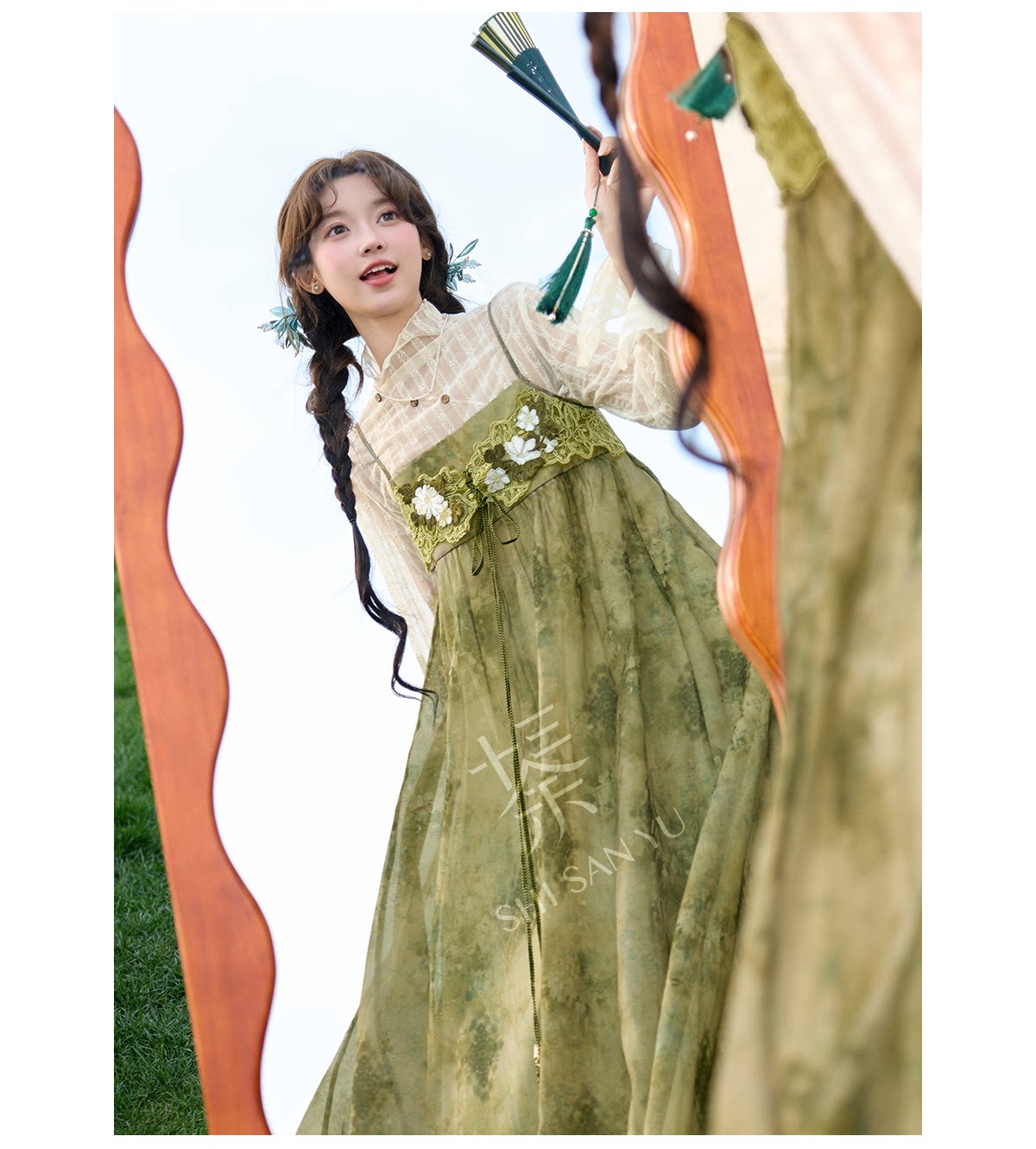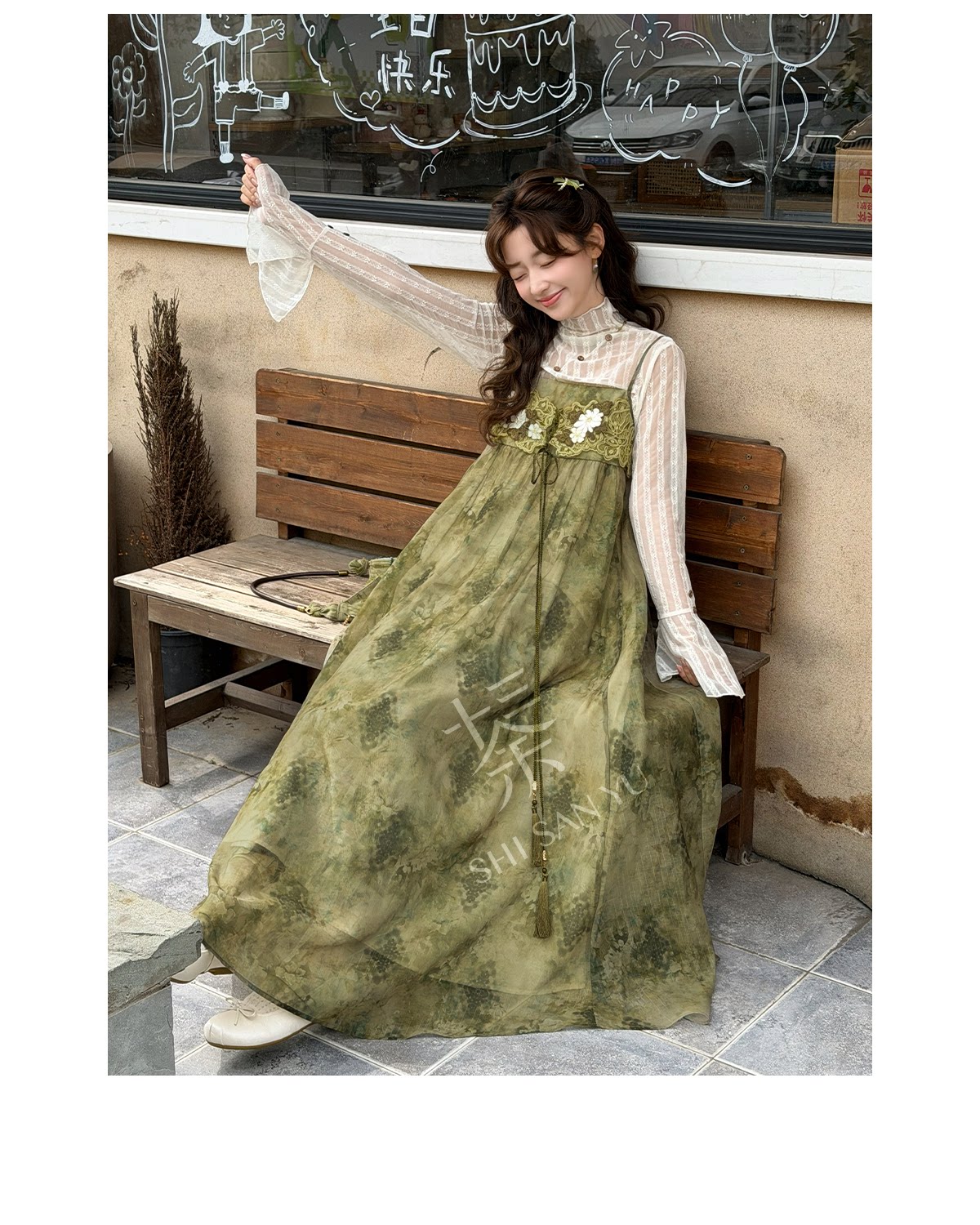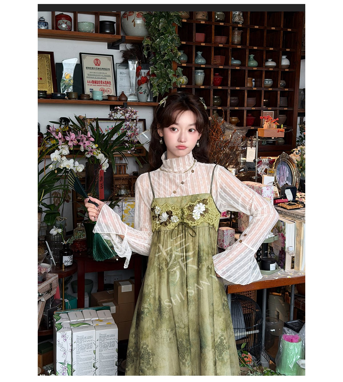 spring-sounds: ホーム > ♥レディース漢服 > 日常向け キャミソールワンピース+半透明ハイネックインナー 漢元素レディースセット  十三余[松蔓]