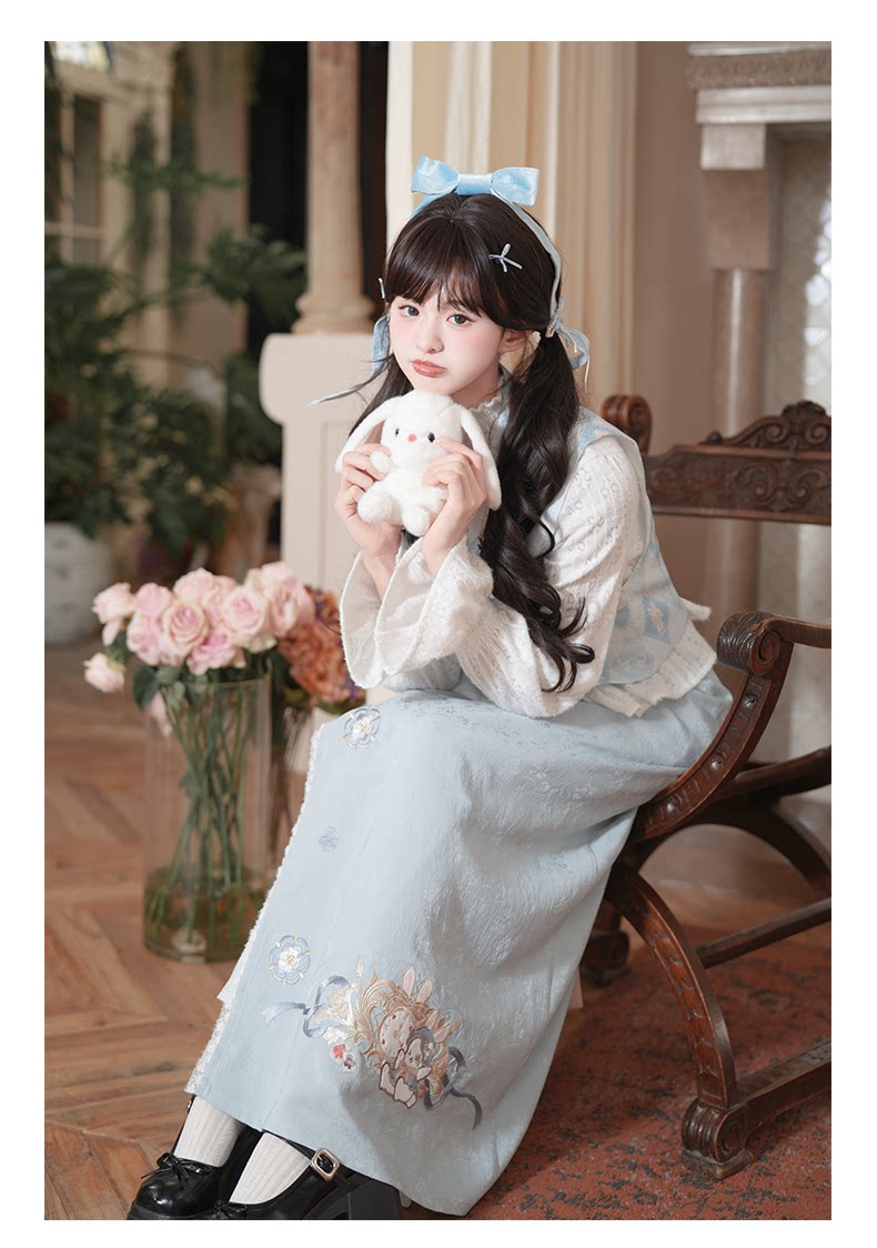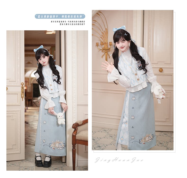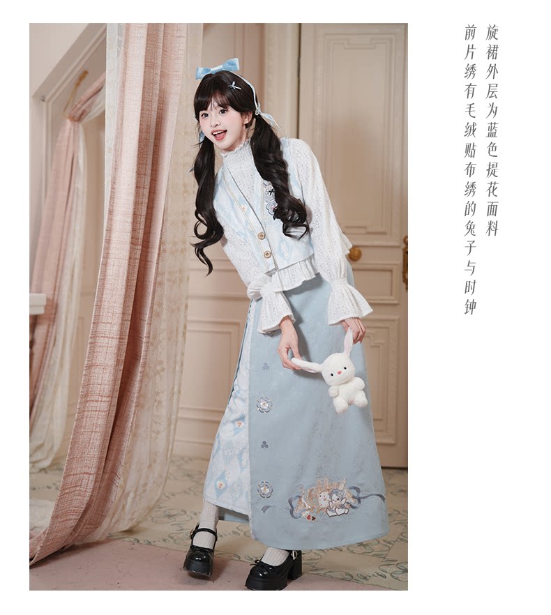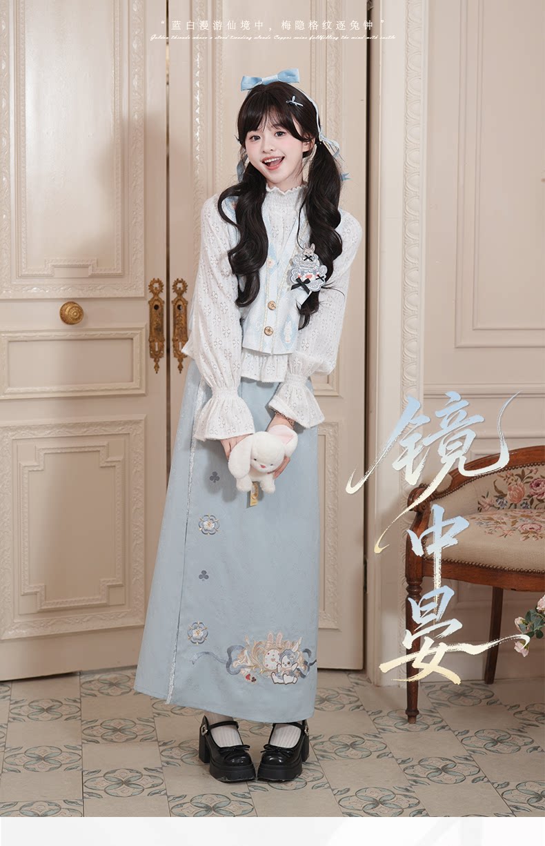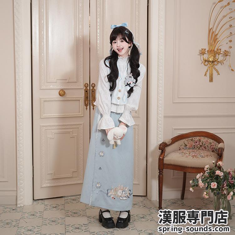 兎刺繍 唐制漢服 レディース  唐静还决 镜中晏
