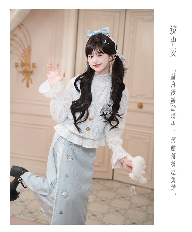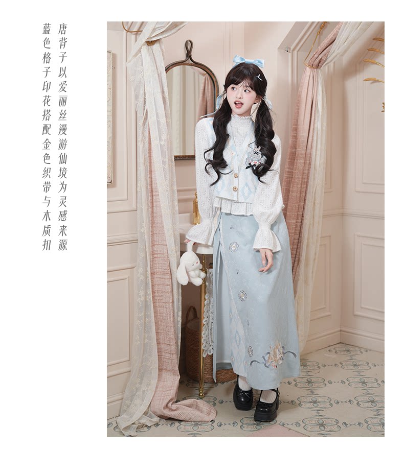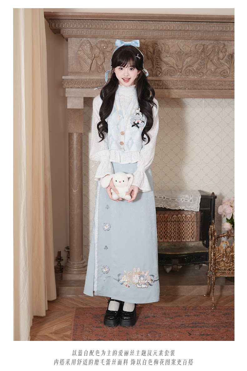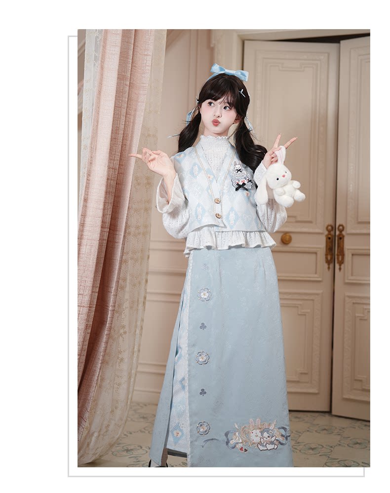 兎刺繍 唐制漢服 レディース  唐静还决 镜中晏