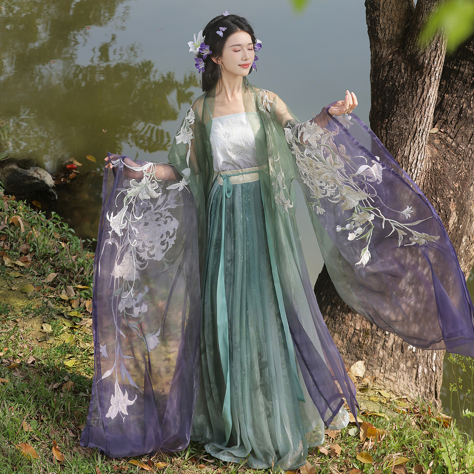 豪華刺繍 3点セット レディース漢服 玉术【幽谷百合】