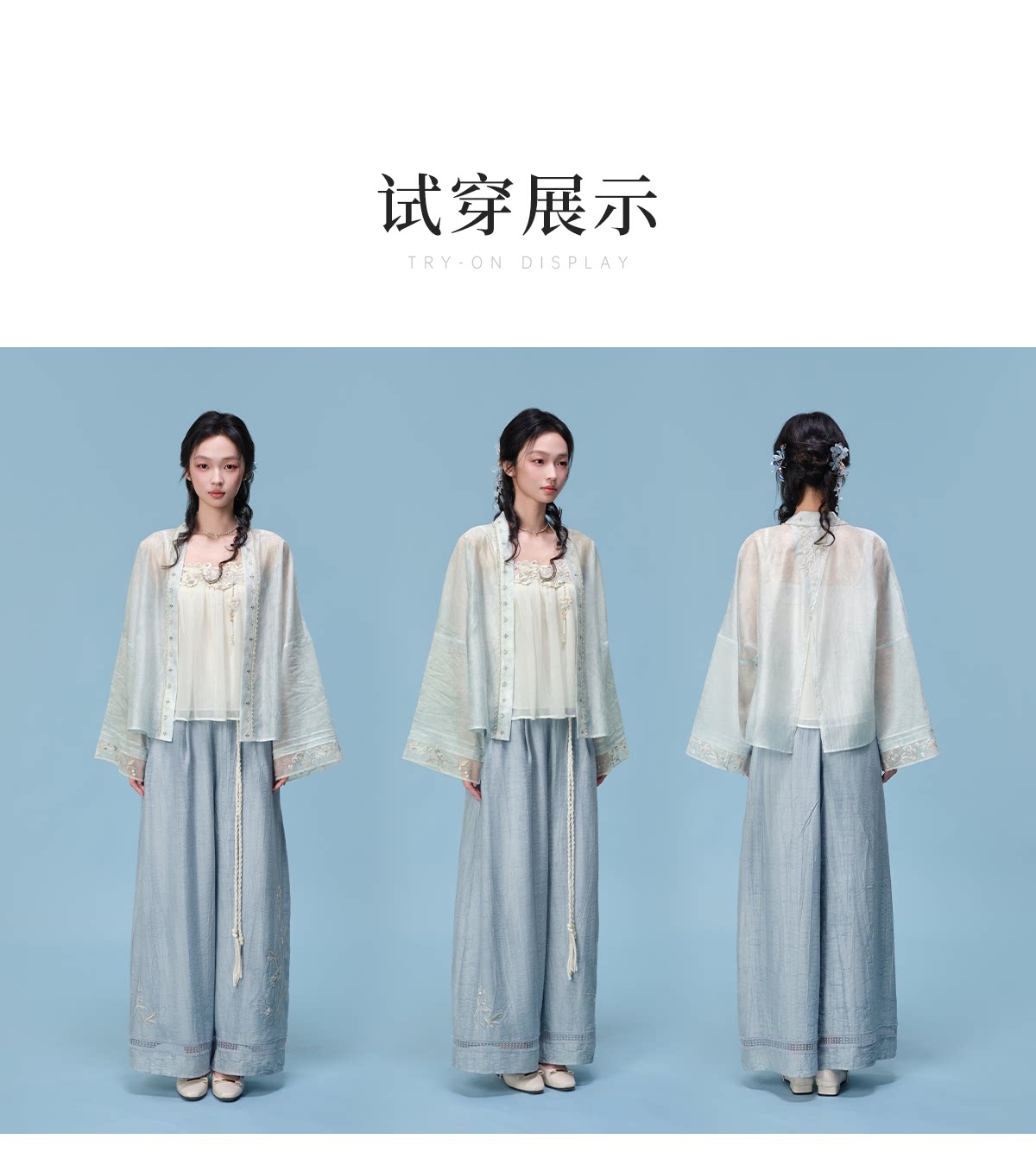 3点セット 改良漢服 刺繍 レディース 十三余[清芷]